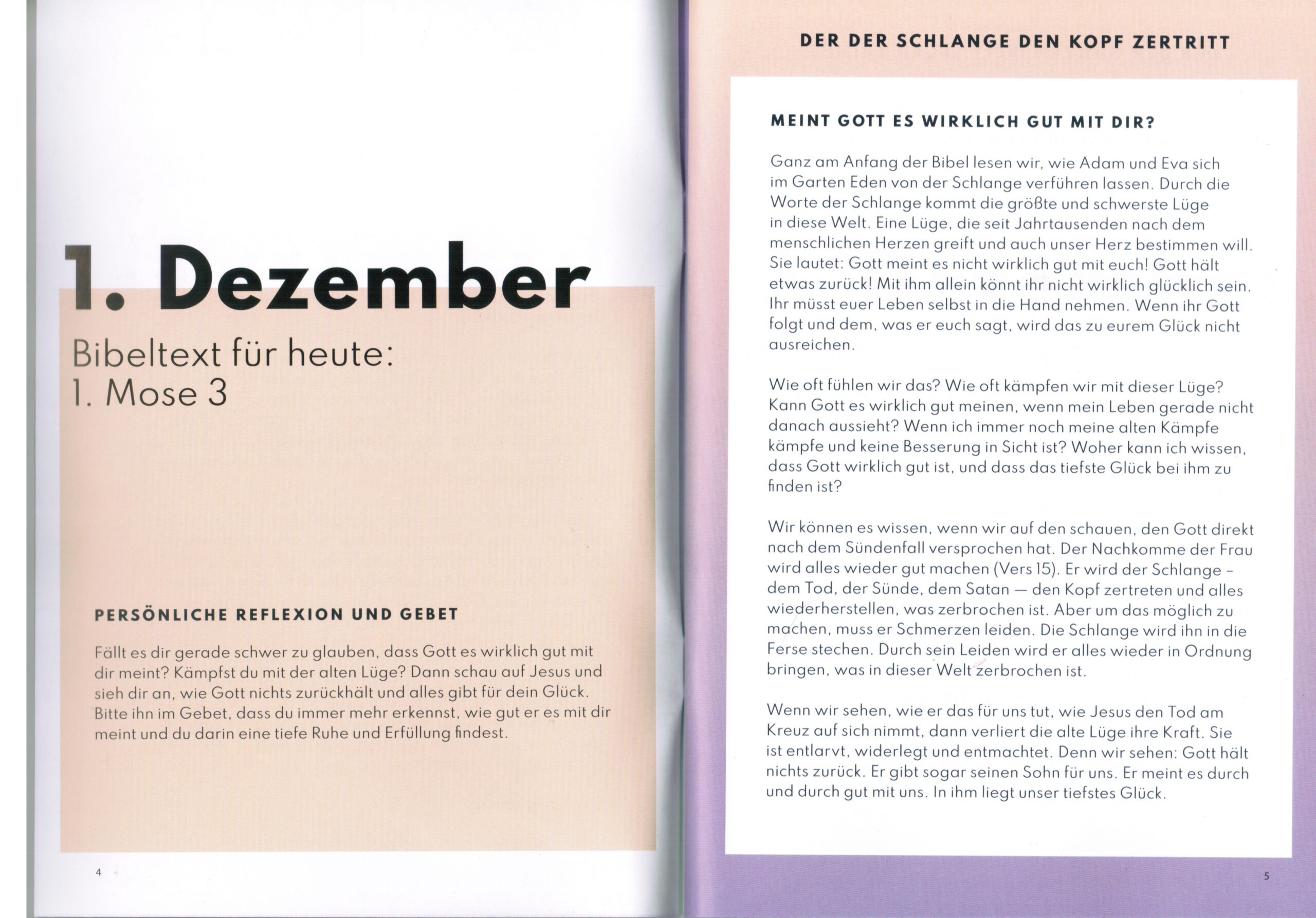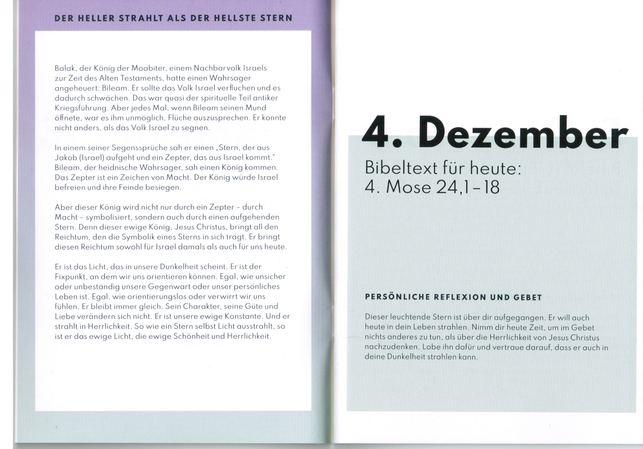 Die Hefte kannst du dir kostenlos in der Gemeinde mitnehmen – und auch gerne weitergeben! – Falls du jetzt direkt schon loslegen möchtest, das Heft dir erst am Sonntag in der Gemeinde abholen kannst, gibt es hier die ersten 4 Tage schonmal vorab: